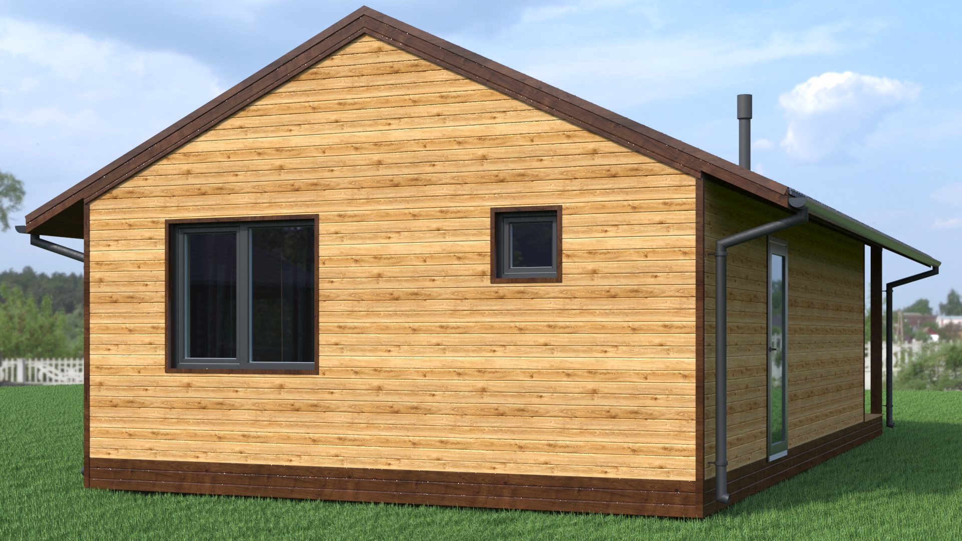 Проект одноэтажного каркасного дома 52 м2 с одной спальней, просторной кухней-гостиной и совмещенным санузлом. Возможны комплектации для постоянного проживания или дачного варианта.